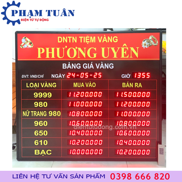Việc chọn bảng giá vàng điện tử của Điện tử tự động Phạm Tuân không chỉ giúp tiệm vàng của bạn hoạt động hiệu quả hơn, mà còn nâng cao tính chuyên nghiệp, tối ưu chi phí, tạo dấu ấn đặc trưng trong mắt khách hàng.